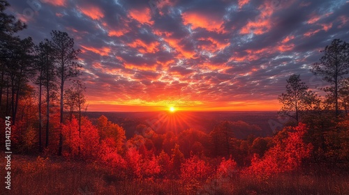 Fototapeta premium Fiery Autumn Sunset over Scenic Landscape