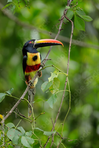 Fototapeta premium Fiery-billed Aracari perching on branch