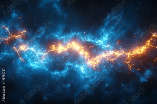 Fototapeta premium Fiery Blue-Orange Lightning Storm in Space