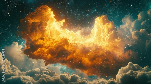 © Dece Std, Fototapeta premium Fiery celestial cloud formation in starry night sky