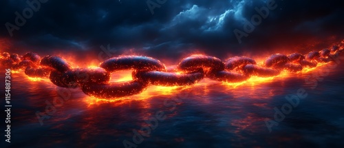 Obraz premium Fiery chain against stormy sky.