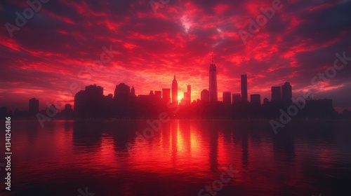 © arlisa, Fototapeta premium Fiery Cityscape at Dawn