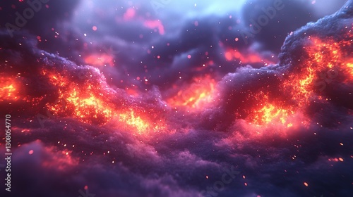 © Jajang, Obraz premium Fiery clouds ignite storm sky