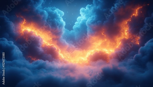 © atha_lintar, Fototapeta premium Fiery Clouds in the Night Sky