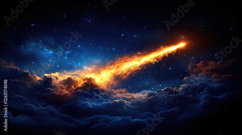 Fototapeta premium Fiery Comet Streaking Across Starry Night Sky