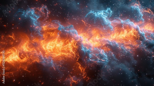 © Anna Shuliatieva, Fototapeta premium Fiery Cosmic Clouds. Abstract Space Background With Nebula, Star Clusters, Galaxy. 3D Illustration