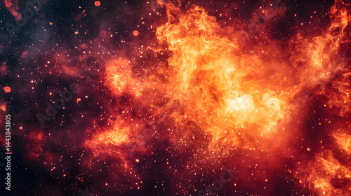 © ahmad musiyam, Fototapeta premium Fiery cosmic nebula, space background, energy, abstract art