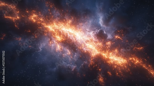 Fototapeta premium Fiery Cosmic Nebula Space Background Stunning orange and blue nebula with vibrant glowing energy