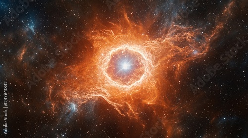 Obraz premium Fiery cosmic nebula with bright central star.