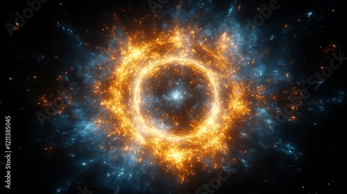 © MASJAB, Obraz premium Fiery Cosmic Ring Nebula Glowing Brightly