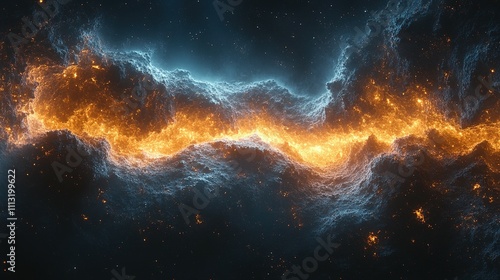 Fototapeta premium Fiery Cosmic River Flows Through Dark Nebula