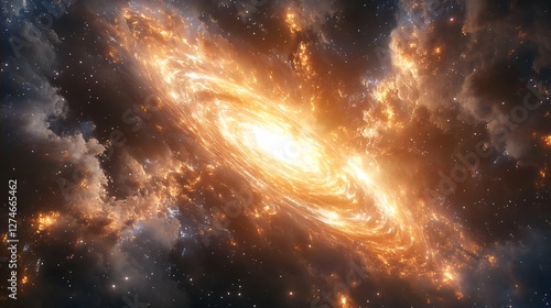 Naklejka premium Fiery cosmic spiral galaxy, space background, science fiction art
