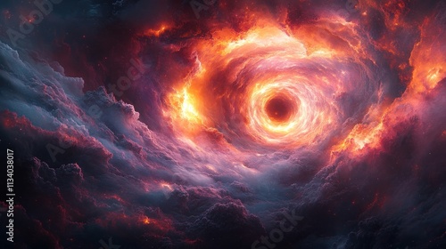 © logyartstudios, Obraz premium Fiery cosmic vortex swirling within dark nebula clouds.