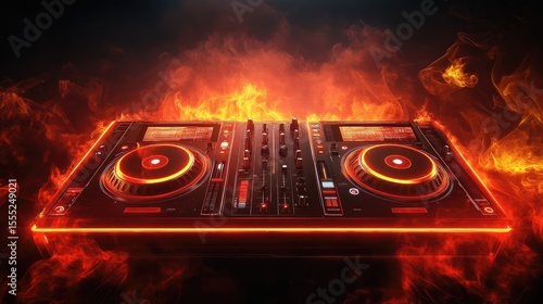 © Rohmat, Fototapeta premium Fiery dj controller on a dark background.