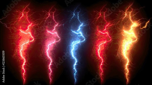 Obraz premium Fiery Electric Storm: Abstract Lightning Plasma Background. Intense Colors,...