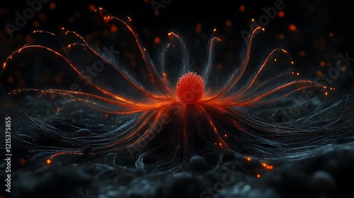 © Ardhana, Obraz premium Fiery Embers Flower Glowing Darkly In Volcanic Ash