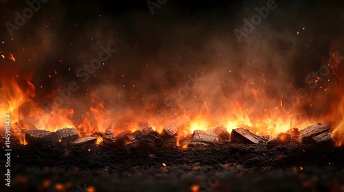 Naklejka premium Fiery Embers Glowing Brightly In The Dark Night