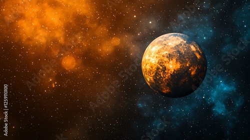 © Jagat_Aji, Obraz premium Fiery exoplanet in nebula, space exploration.