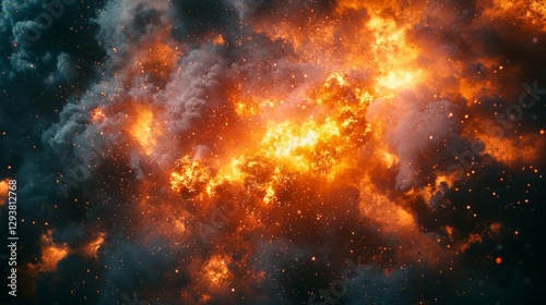 Fototapeta premium Fiery Explosion in Cosmic Space with Glowing Red and Orange Clouds