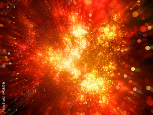 © sakkmesterke, Fototapeta premium Fiery explosion in space with particles