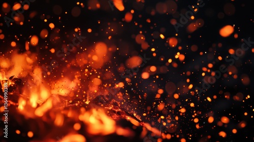 Fototapeta premium Fiery flames and sparks, night view, nature background, Abstract fire, use in visual design