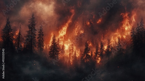 Naklejka premium Fiery Forest Inferno: A Dramatic Silhouette