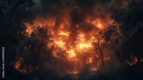 © Kanurism, Naklejka premium Fiery Forest Inferno at Night