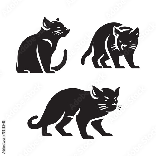 © Wolfe , Obraz premium Fiery Frenzy: Vector Tasmanian Devil Silhouette for Wildlife and Nature-inspired Designs, Minimalist Black Tasmanian devil silhouette.