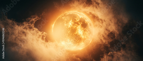 Obraz premium Fiery Full Moon Hidden Behind Clouds Dramatic Night Sky