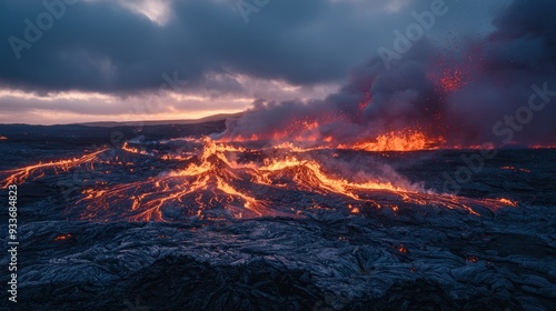 Fototapeta premium Fiery Fury: Spectacular Lava Flow from Erupting Volcano