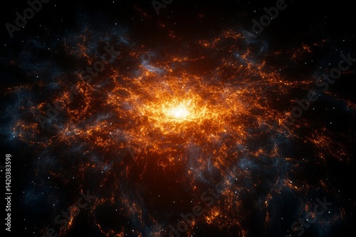 Naklejka premium Fiery galactic core, swirling nebulae