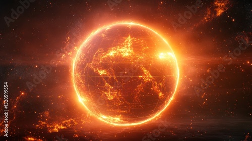 Fototapeta premium Fiery Global Network: A Digital Earth in Inferno