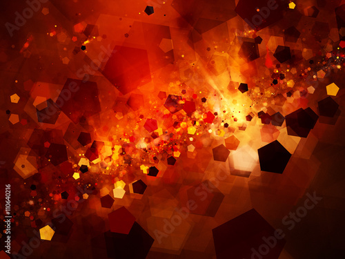 Fototapeta premium Fiery glowing nebula in space with pentagon particles