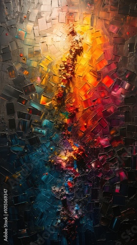 © Hamdee, Obraz premium Fiery Grunge Texture with Abstract Circles and Warm Colors