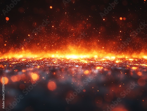 Naklejka premium Fiery Horizon: Glowing Sparks on Dark Ground.
