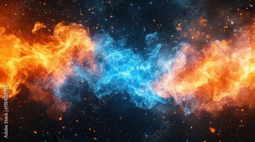 © afif, Naklejka premium Fiery, icy swirls collide in cosmic space; abstract background
