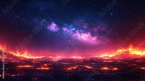© sweattea, Naklejka premium Fiery landscape under starlit sky.