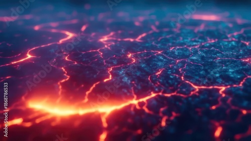 © Musthofa, Fototapeta premium Fiery Lava Flow With Cracked Earth Texture.