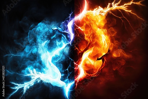 Obraz premium Fiery lightning on a black and blue background. Abstract background