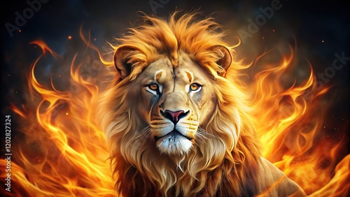 © chaowalit, Fototapeta premium Fiery Lion Majesty: Spectacular Flame Lion Art, Digital Painting