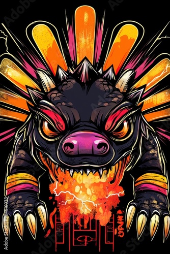 © Tungbackground, Fototapeta premium Fiery Monster Illustration