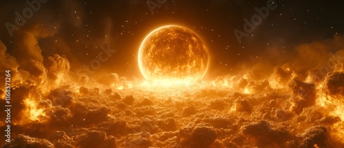 © Dwi, Obraz premium Fiery moon over burning cloudscape.