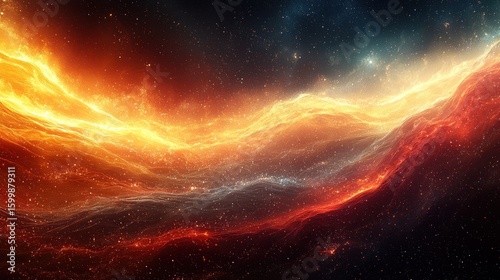© 2247, Obraz premium Fiery Nebula: A Cosmic Dance of Orange and Red