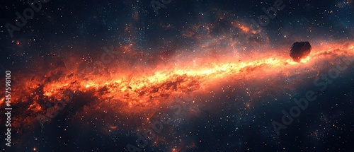 Obraz premium Fiery Nebula and Asteroid in Deep Space