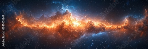 © Ali, Fototapeta premium Fiery nebula bursts across cosmic expanse