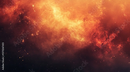 Naklejka premium Fiery Nebula Cloud Formation with Orange and Red Cosmic Dust