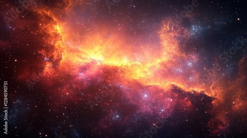 Obraz premium Fiery Nebula Cosmic Space Background, stellar, digital art