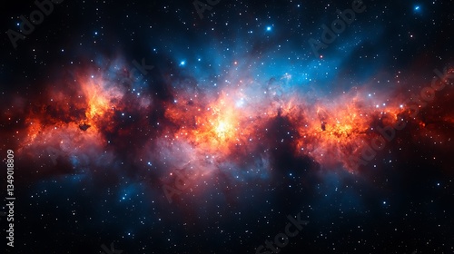 © Adobe, Naklejka premium Fiery nebula in space with red and blue hues.