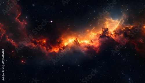 © ryandi, Fototapeta premium Fiery Nebula Space Background Orange and Red Cosmic Clouds