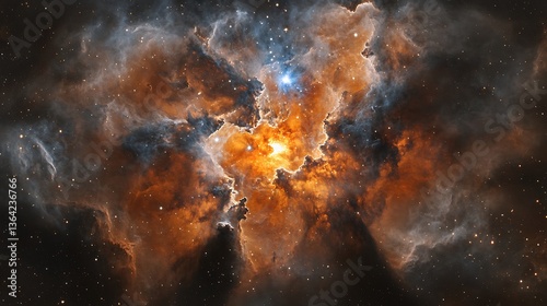 Obraz premium Fiery nebula with bright core and dark dust.